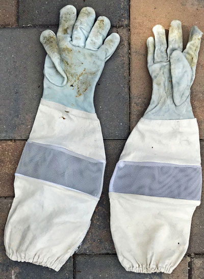 As both beginner and experienced beekeepers know, leather beekeeping gloves can get filthy after a season of bee work: covered in honey, propolis, and wax. In addition, dirty gloves may carry a heavy load of sting and alarm pheromones causing the bees extra stress. After researching and trying out various methods, we found that soaking and scrubbing with regular Dawn dish soap works the best.
