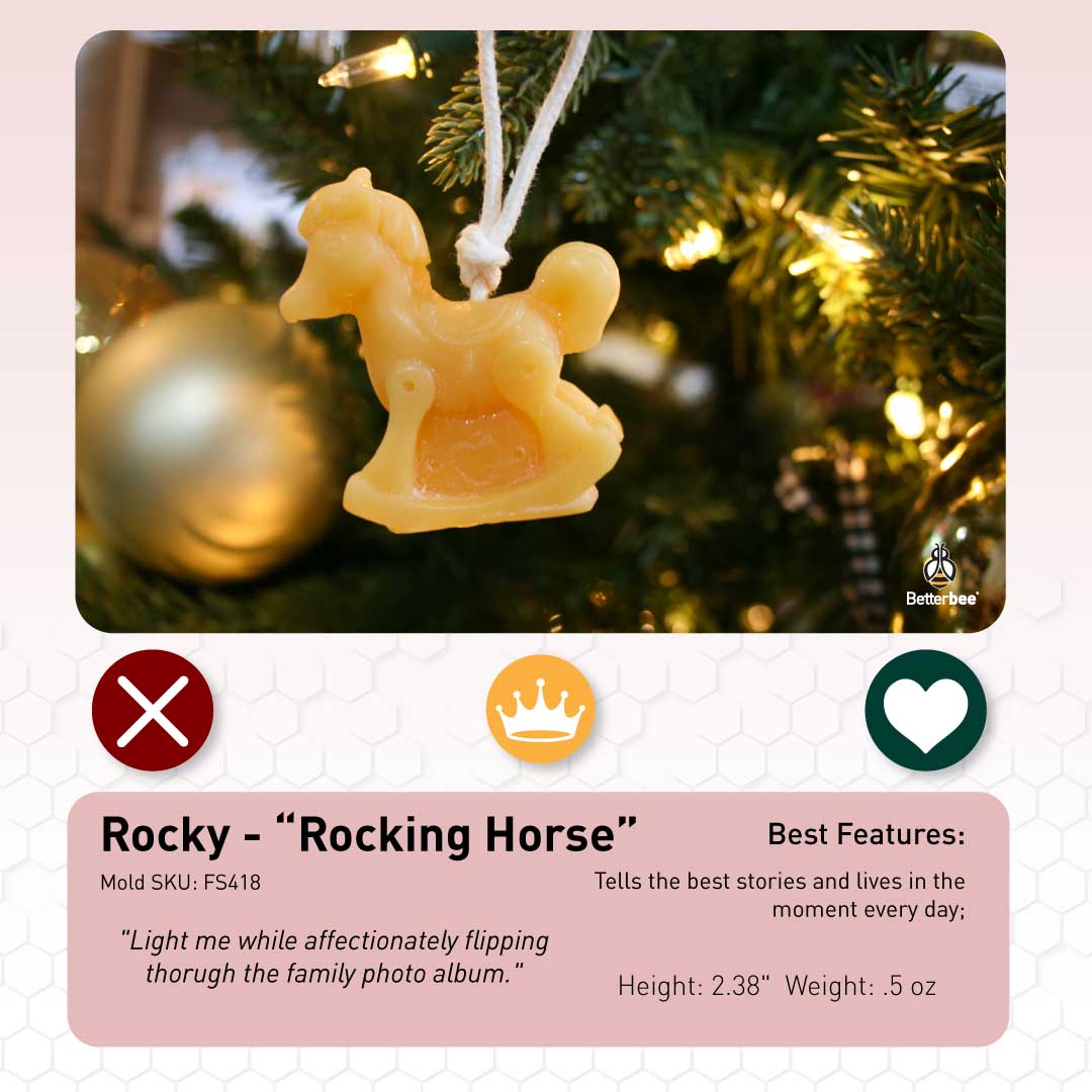 It was our first ride. Our loyal rocking pony brought us all around our imagination, its gallup heard only in our mind, but felt in our laughter. Now, you can recreate that magical feeling with your own, handmade candles. Made of long lasting silicone by industry leader, Lyson.