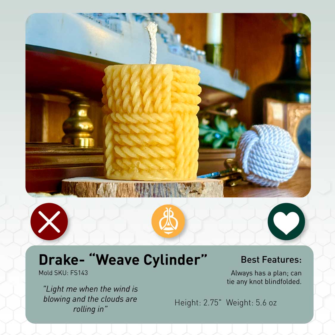 This weave pillar candle mold with a woven pattern is one of our molds from Lyson. The nautical style also makes it a great gift!
