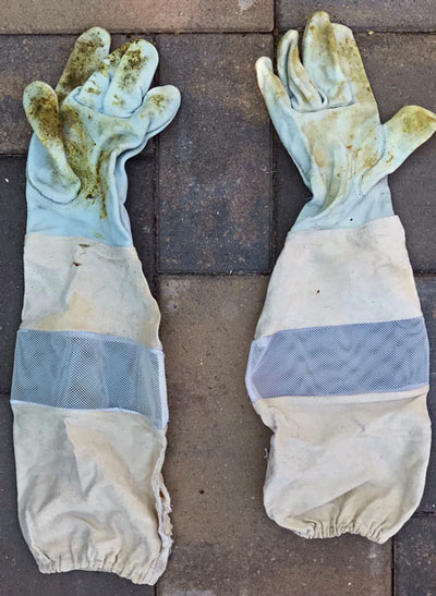 As both beginner and experienced beekeepers know, leather beekeeping gloves can get filthy after a season of bee work: covered in honey, propolis, and wax. In addition, dirty gloves may carry a heavy load of sting and alarm pheromones causing the bees extra stress. After researching and trying out various methods, we found that soaking and scrubbing with regular Dawn dish soap works the best.